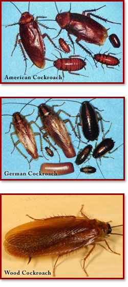 Cockroaches = the presence of cockroaches is often detected by there damage or fecal matter they deposit. They produce odorous secretions and cast skins that contain allergens for sensitive allergic people.